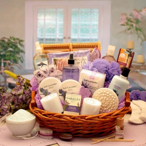 • Send her an indulgent spa experience right at home with this exquisite spa gift basket featuring all Lavender products